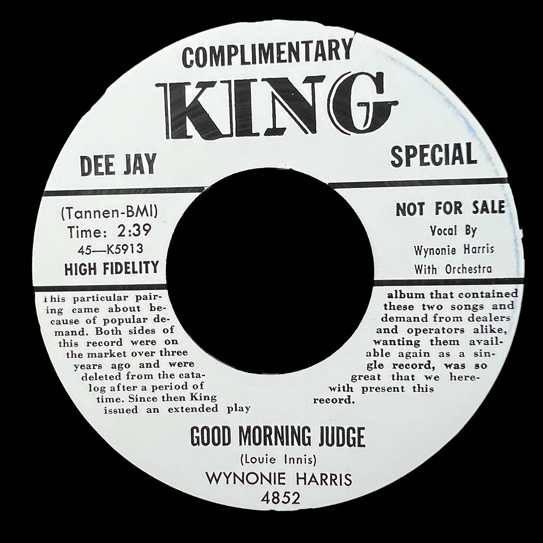 King poppa jivers double sided greatness! Wynonie goes western here with his King Label mates. Side A is Wynonie's version of Hank Penny's Bloodshot Eyes.  Side B is the Louis Innis track Good Morning Judge.